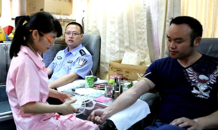 消息传来后,郑和的伤情立刻牵动了我们刑侦大队战友们的心。大队第一时间发出动员,号召A型血的同志前往采血点参与献血,为英雄的生命助力。献血的消息通过电话、短信、微信的方式在整个刑侦大队迅速传达和转发,这是和时间赛跑,和死神搏斗,为了受伤的战友,为了生命的延续,大家不约而同地赶往了采血地点。